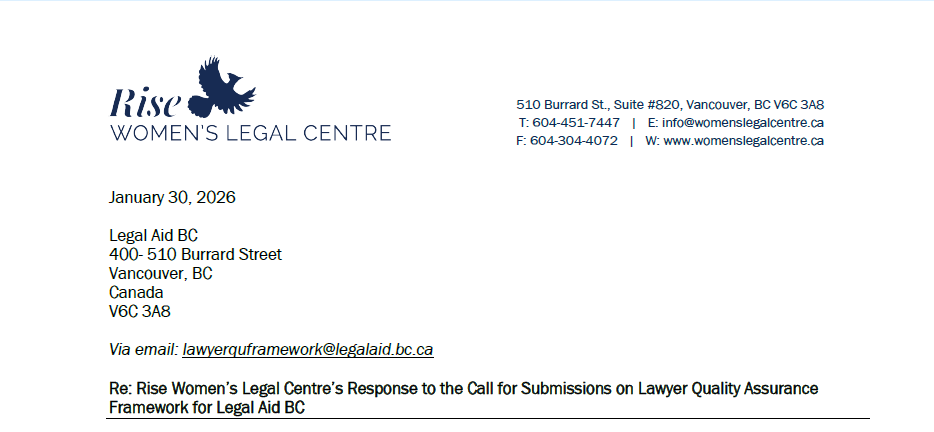 On January 30, 2026, Rise made a submission in response to Legal Aid BC’s (LABC) call on lawyer quality assurance frameworks.
